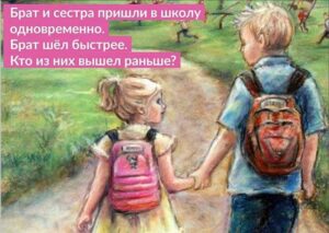 Задача «Брат и Сестра» из сборника «100 необычных задач» Брат и сестра пришли в школу одновременно. Брат шёл быстрее. Кто из них вышел раньше? Это задача по математике на тему «время» из нашего сборника 100 НЕОБЫЧНЫХ МАТЕМАТИЧЕСКИХ ЗАДАЧ >>>. Дело в том, что дети часто не только, что не могут время по часам определить, а просто не чувствуют его. Математика…