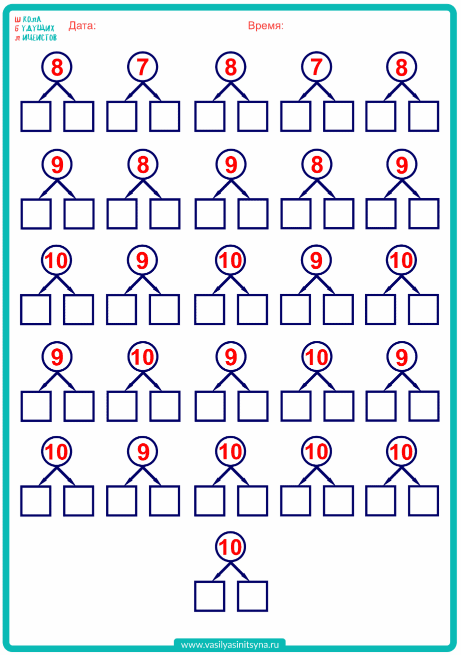Наша цель — запомнить состав всех чисел до 10.