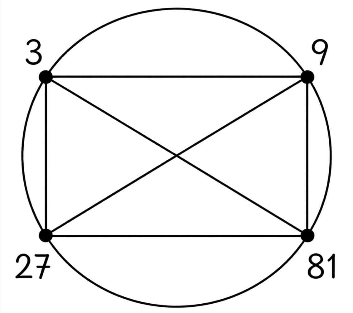 Каждое следующее число делится на предыдущее, поэтому между соответствующими точками проведены все отрезки: